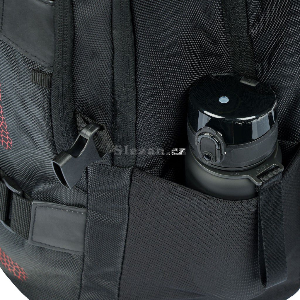 • Boční kapsy z pevné materiálu, které jsou vhodné pro jednu z našich lahví na pití.