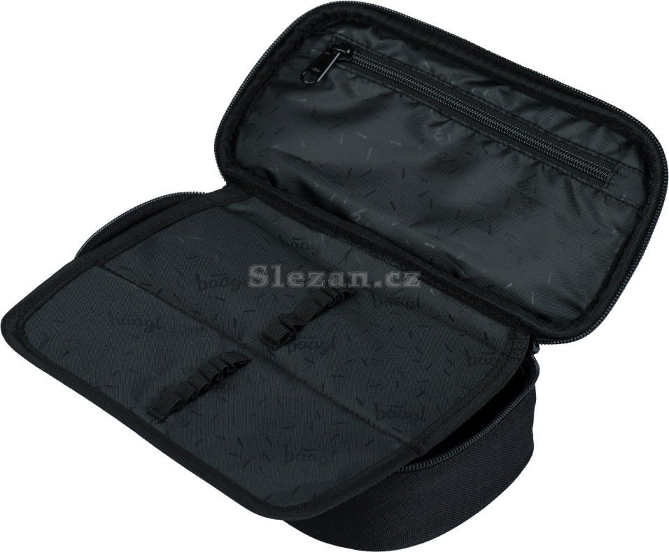 Pevný školní penál s výklopnou vnitřní přepážkou.