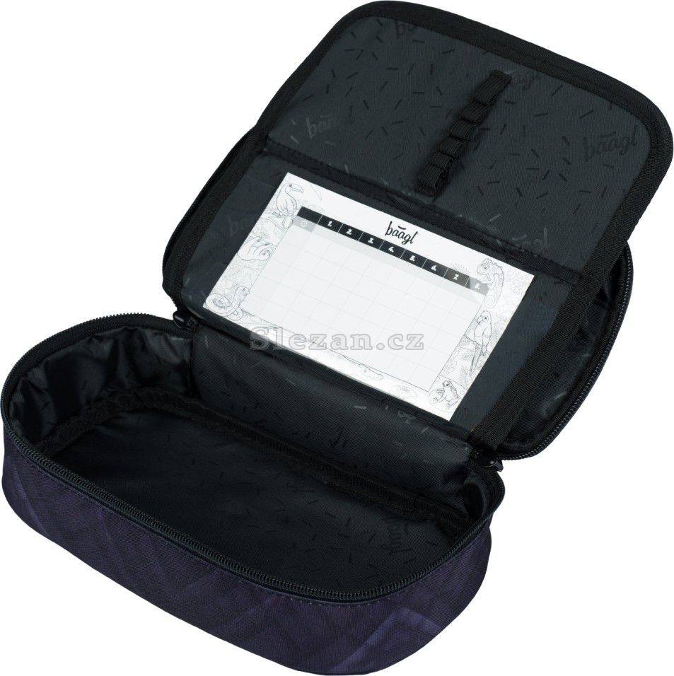 Pevný školní penál s výklopnou vnitřní přepážkou.