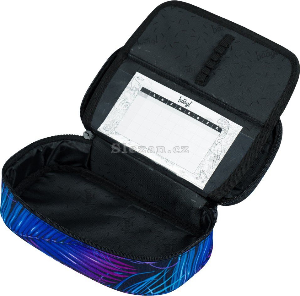 Pevný školní penál s výklopnou vnitřní přepážkou.
