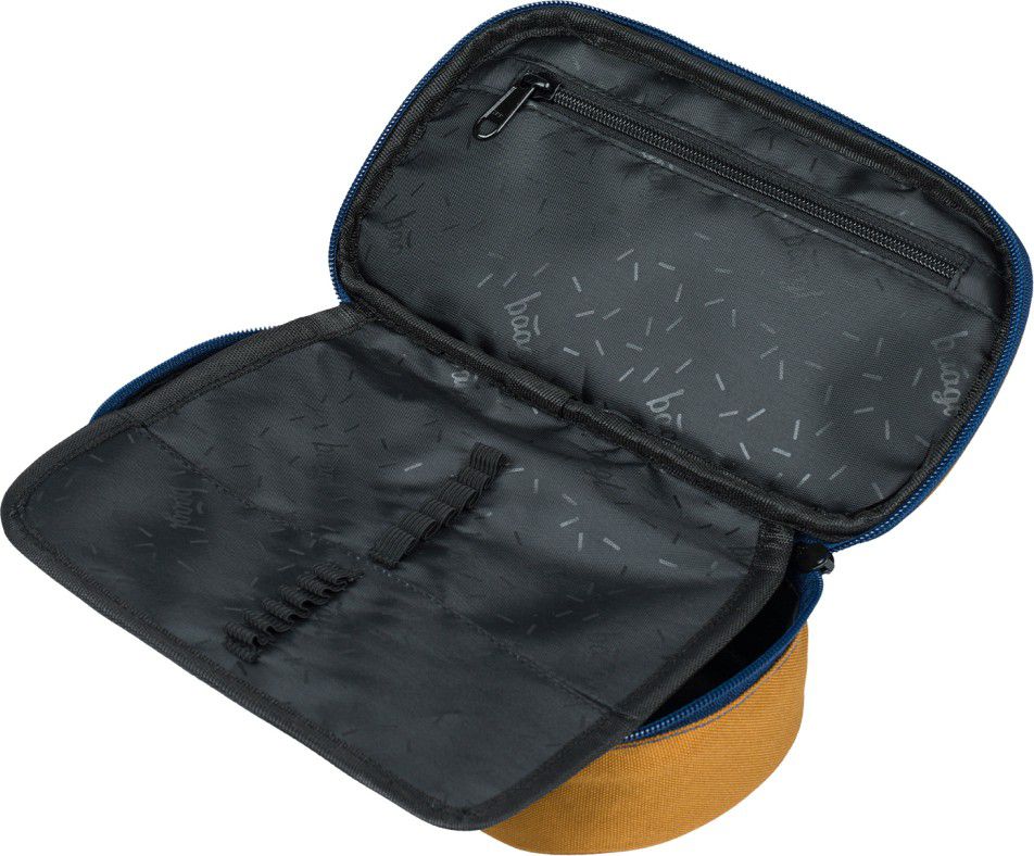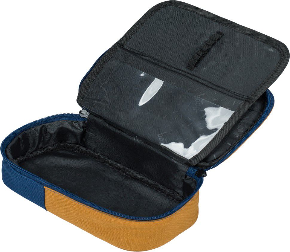 Kompaktní penál na zip s prostornou hlavní komorou a dvojitou výklopnou chlopní nabízí dostatek prostoru pro psací potřeby i drobnosti.