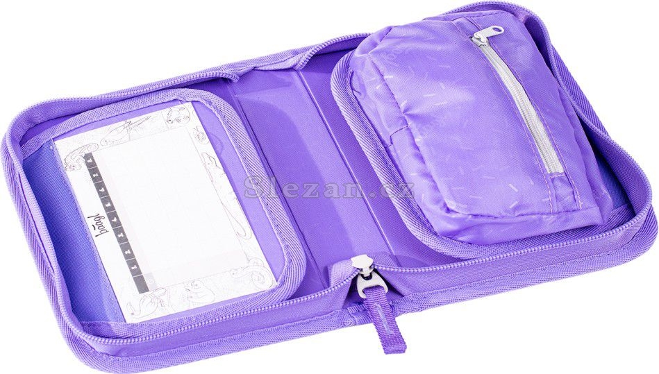 Součástí penálu je také kapsička na drobnosti a okénko na rozvrh hodin.