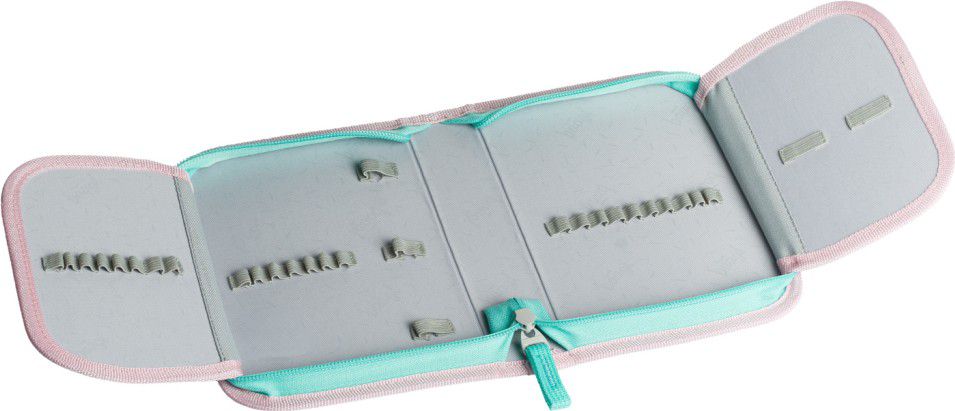 Klasický školní jednopatrový penál s dvěma chlopněmi.