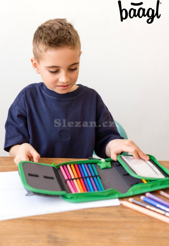 Popis BAAGL Školní penál jednopatrový Fotbal Míč zelený