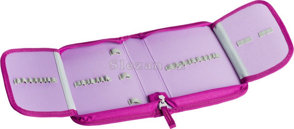 Vybavený přehledným organizérem a speciální kapsičkou, do které může dítě bezpečně uschovat nůžky, ořezávátko, ale i další drobnosti.