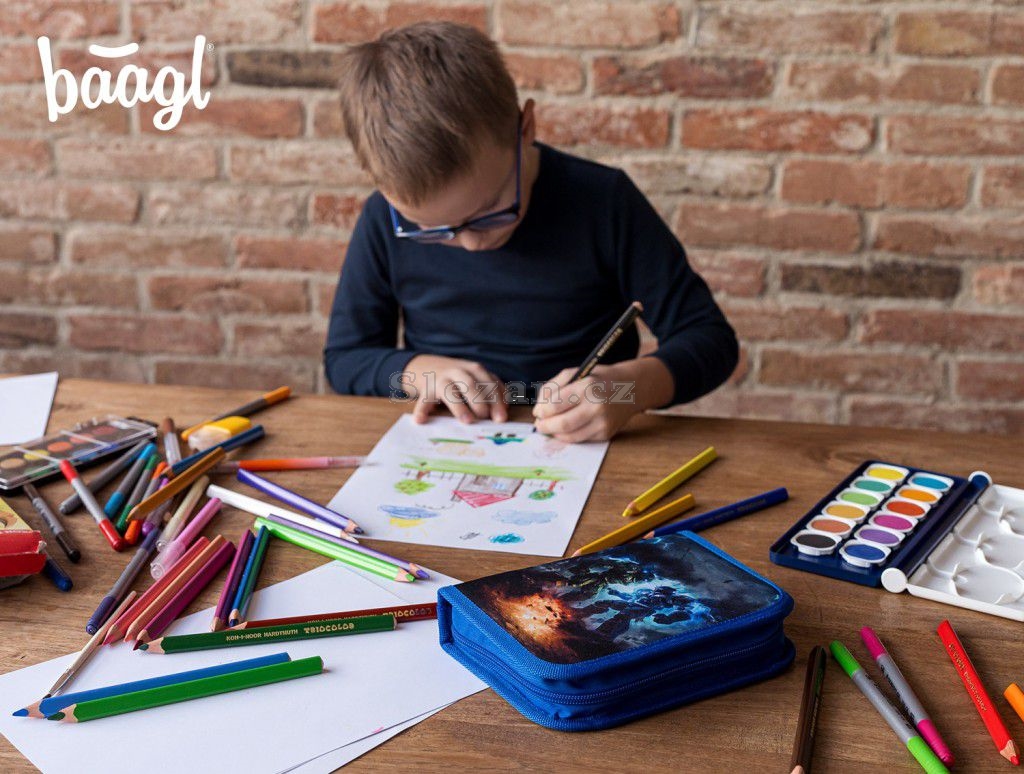 Popis BAAGL Školní penál jednopatrový Roboti