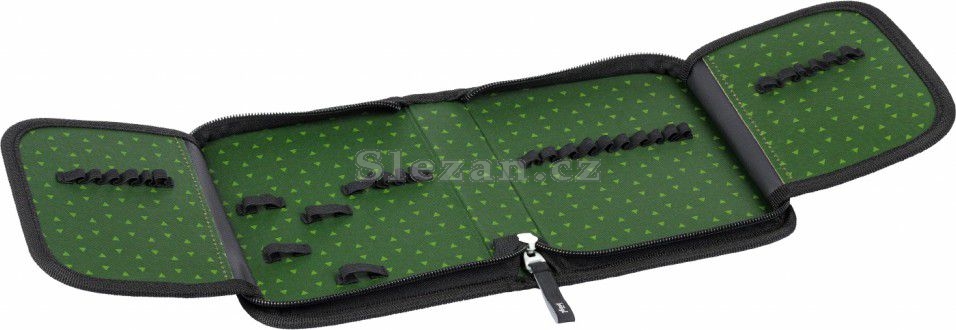 Klasický školní jednopatrový penál s dvěma chlopněmi.
