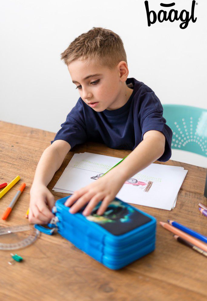 Popis BAAGL Školní penál třípatrový Závodní auto