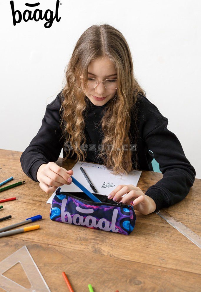 Pouzdro na tužky, pera a jiné drobnosti z pevného materiálu.