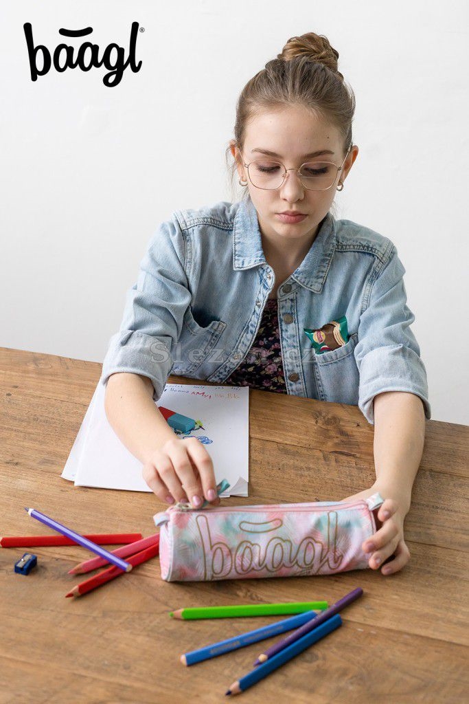 Pouzdro na tužky, pera a jiné drobnosti z pevného materiálu.