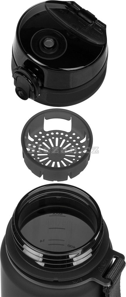 Uzamykatelné víčko nepropustí ani kapku nápoje a zaručuje jednoduché a intuitivní používání. Součástí láhve je i sítko, díky kterému můžete láhev použít i na limonády s ovocem nebo čaj (materiál je vhodný i pro horké nápoje). K láhvi je připevněné také poutko pro pohodlné nošení v ruce.