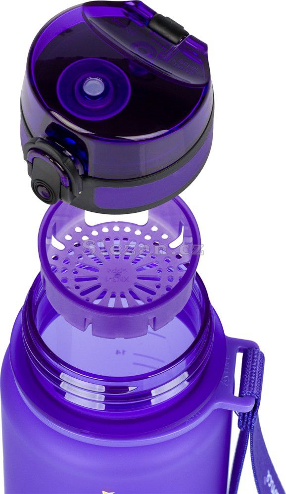 Uzamykatelné víčko nepropustí ani kapku nápoje a zaručuje jednoduché a intuitivní používání. Součástí láhve je i sítko, díky kterému můžete láhev použít i na limonády s ovocem nebo čaj (materiál je vhodný i pro horké nápoje). K láhvi je připevněné také poutko pro pohodlné nošení v ruce.