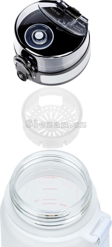 Uzamykatelné víčko nepropustí ani kapku nápoje a zaručuje jednoduché a intuitivní používání. Součástí láhve je i sítko, díky kterému můžete láhev použít i na limonády s ovocem nebo čaj (materiál je vhodný i pro horké nápoje). K láhvi je připevněné také poutko pro pohodlné nošení v ruce.