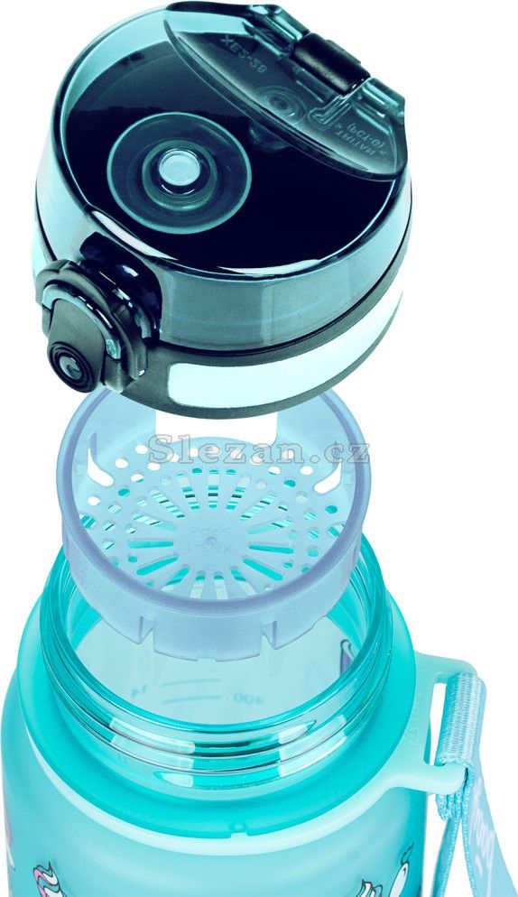 Uzamykatelné víčko nepropustí ani kapku nápoje a zaručuje jednoduché a intuitivní používání. Součástí láhve je i sítko, díky kterému můžete láhev použít i na limonády s ovocem nebo čaj (materiál je vhodný i pro horké nápoje). K láhvi je připevněné také poutko pro pohodlné nošení v ruce.