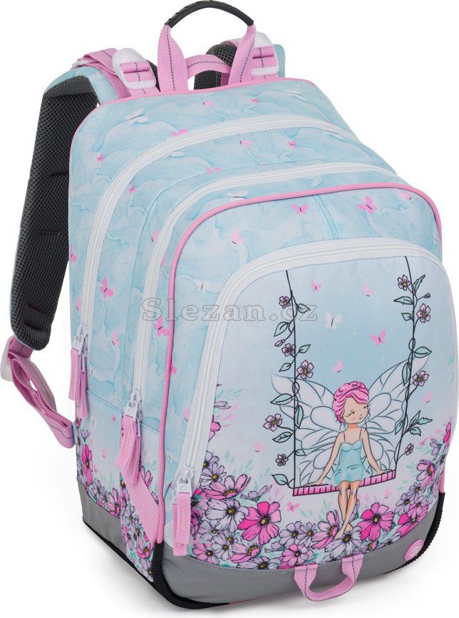 Jemný extra lehký tříkomorový školní batoh pro prvňačky s křehkou vílou.