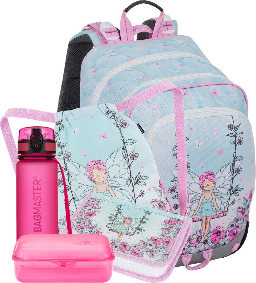 Jemný extra lehký tříkomorový školní batoh pro prvňačky s křehkou vílou. Zamilují děti i rodiče. Bezpečný zádový systém, reflexní prvky, neškrábavá síťovina, organizér, poutko na klíčenku a spousta dalších fíčur. Výbavu pro malou princeznu doplňuje penál, látkový vak a sladěný svačinový set.