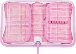 - Pero, pravítko, gumu i pečlivě ořezané tužky a pastelky si přehledně vyskládáš do gumových úchytů v pouzdře. Doma si můžeš zkontrolovat podle rozvrhu v kapse na chlopni pouzdra, že jsi na nic nezapomněla.