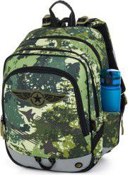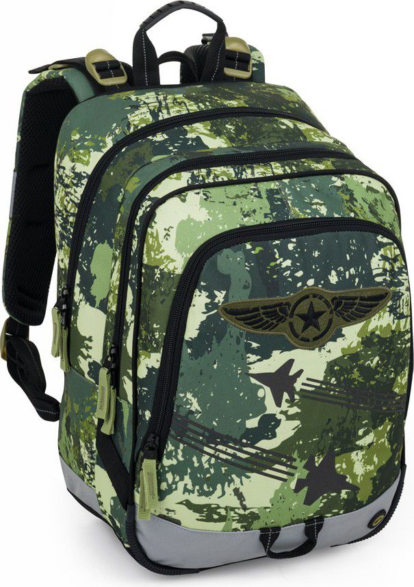 Lehký tříkomorový školní batoh s vojenským motivem pro malé hrdiny.