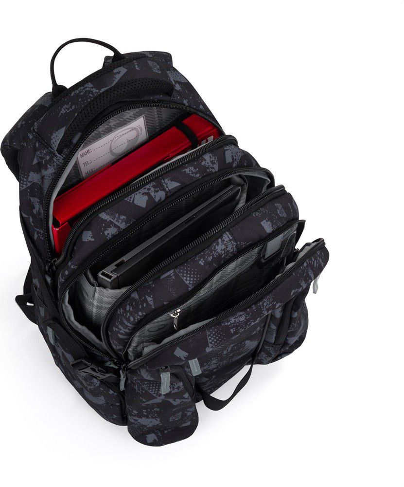 Má tři prostorné komory s polstrovanou přihrádkou na notebook 15” a spoustu menších kapes na různé drobnosti.