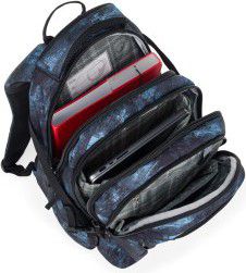 Má tři prostorné komory s polstrovanou přihrádkou na notebook 15” a spoustu menších kapes na různé drobnosti.