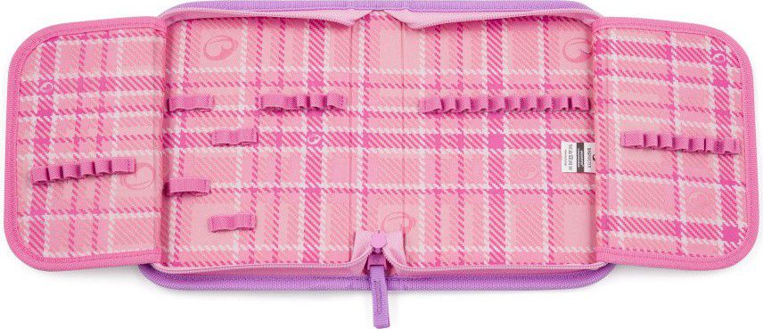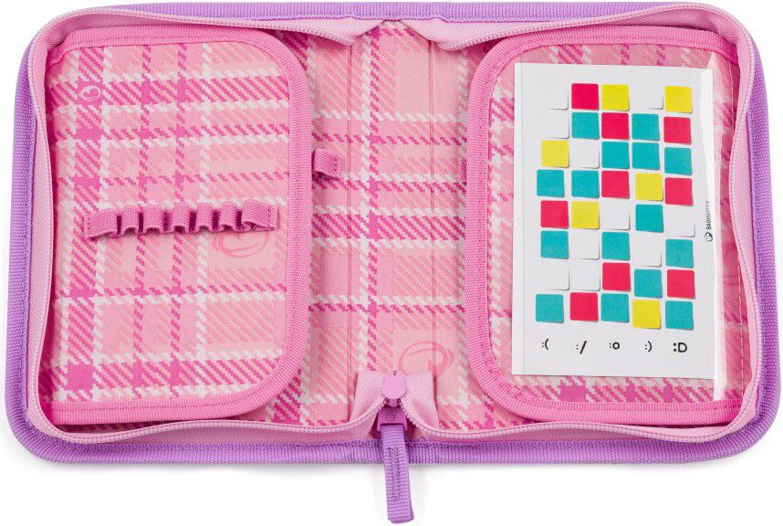 V gumových úchytech na dvou chlopních je dostatek místa na všechny potřebné školní pomůcky.
