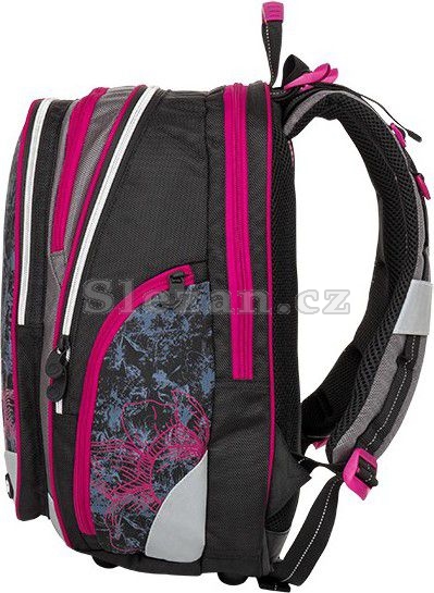 Bagmaster ELEMENT 8 A školní batoh - růžový s květinami