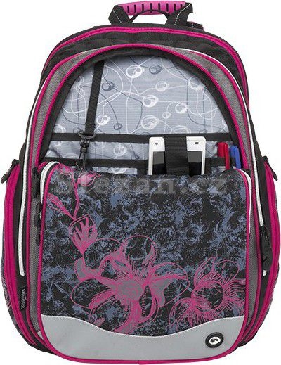 Popis Bagmaster ELEMENT 8 A školní batoh - růžový s květinami