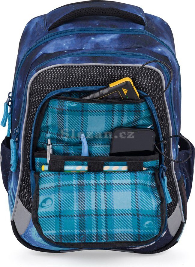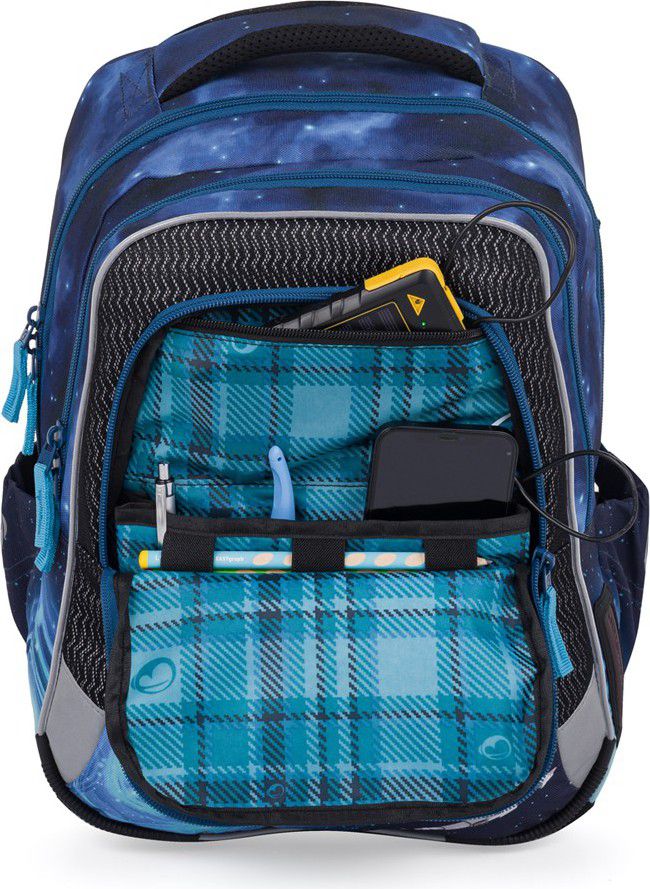 Tříkomorový školní batoh pro malé astronauty od 1. do 3. třídy.