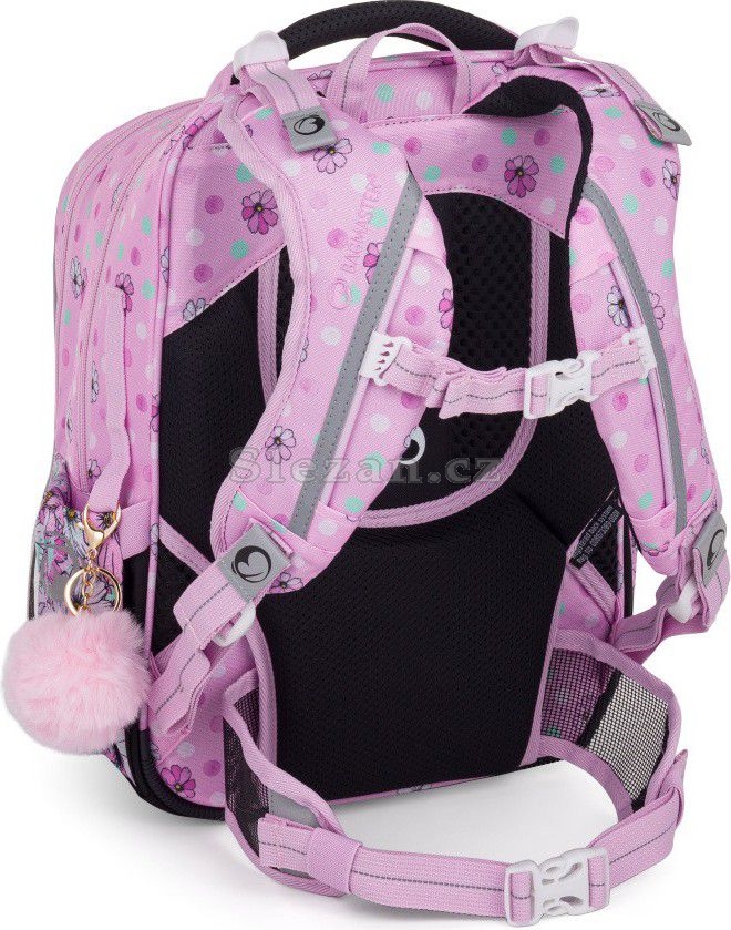 Malé slečny ocení kromě obrázku přihrádky na učení, svačinu a cennosti, chlupatý přívěsek i vychytaný organizér.