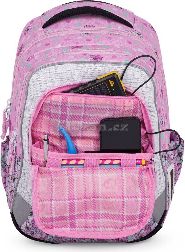Malé slečny ocení kromě obrázku přihrádky na učení, svačinu a cennosti, chlupatý přívěsek i vychytaný organizér.