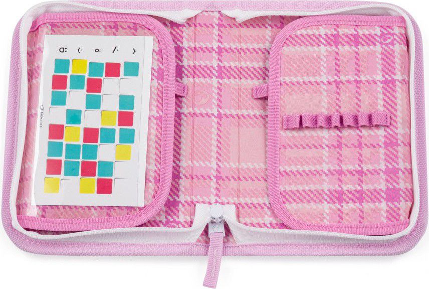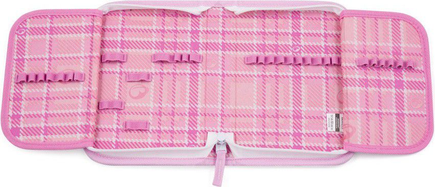 Gumové úchyty na dvou chlopních poskytují dostatek místa na všechny školní pomůcky.