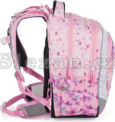 Lehký batoh s tříkomorovým uspořádáním pro učebnice a sešity, ergonomicky tvarovaným zádovým systémem pro pohodlné nošení a reflexními prvky.