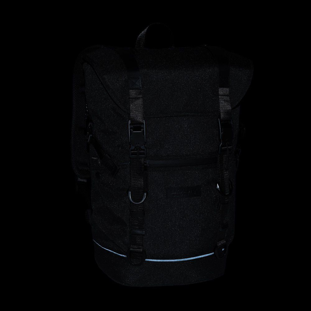 Batoh se zavírá jednoduše na klopnu s originálními sponami.