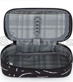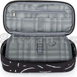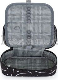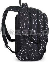 Elegantní černý batoh NOMAD s bílými detaily má dvě komory a přední kapsy, které jsou ideální na sešity, učebnice a drobné cennosti.