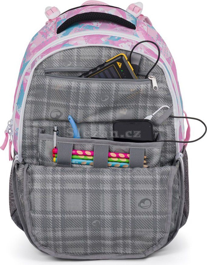 Batoh je prakticky rozdělený do dvou komor, v přední části má menší kapsičky a organizér.