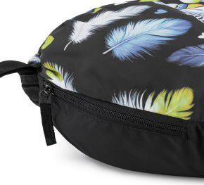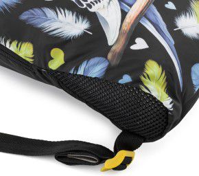 Barevný látkový vak na přezůvky nebo cvičební úbor s motivem papouška a s bezpečnými reflexními prvky.
