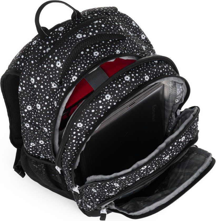 Všechno se vejde do tří prostorných přihrádek včetně polstrované kapsy na notebook a dvou bočních sítěk.