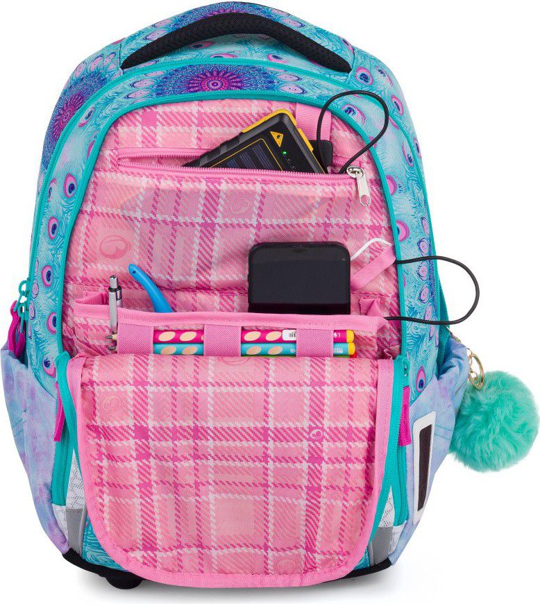 Jemný batoh s pávem pro malé slečny od 1. do 3. třídy.