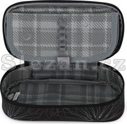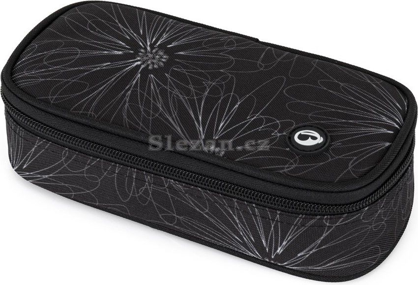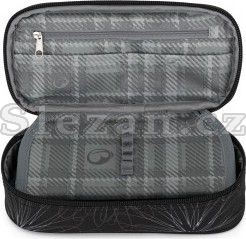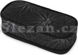 Černý penál s designovými prvky pro školáky.