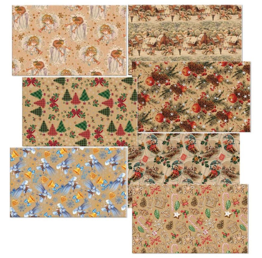 Balící papír NATUR 2 archy 100x70 vánoční mix