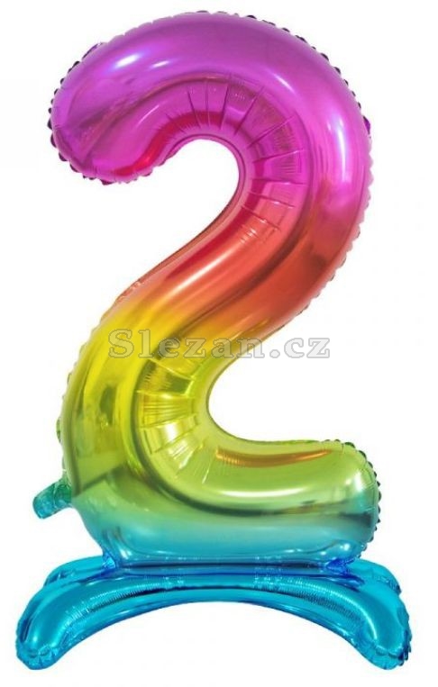 Nafukovací, duhová číslice, kterou nemusíte nafukovat héliem, protože díky nafukovacím nožičkám stojí sama.