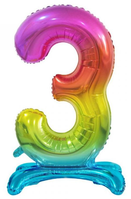 Nafukovací, duhová číslice, kterou nemusíte nafukovat héliem, protože díky nafukovacím nožičkám stojí sama.