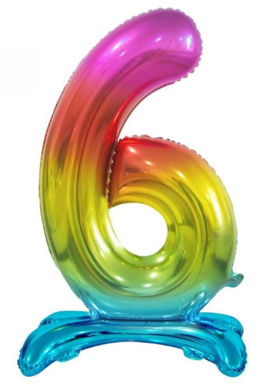 Nafukovací, duhová číslice, kterou nemusíte nafukovat héliem, protože díky nafukovacím nožičkám stojí sama.