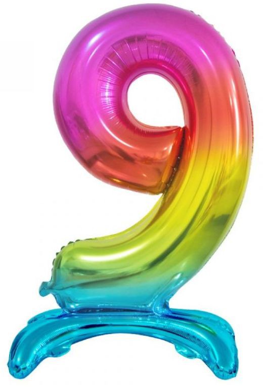 Nafukovací, duhová číslice, kterou nemusíte nafukovat héliem, protože díky nafukovacím nožičkám stojí sama.