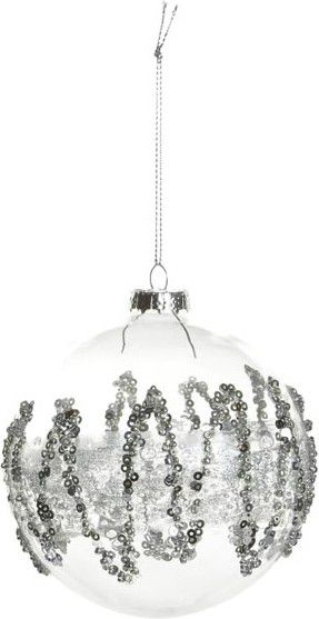 Čirá, skleněná baňka na vánoční stromeček se stříbrným dekorem.