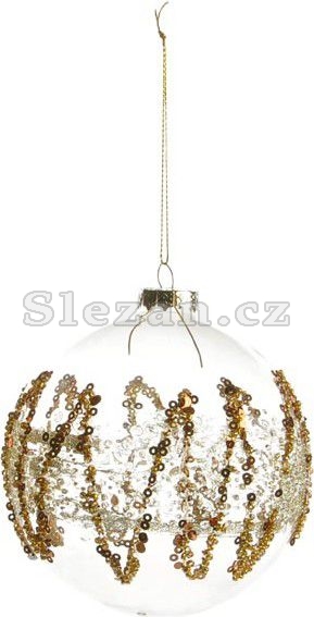 Čirá, skleněná baňka na vánoční stromeček se zlatým dekorem.