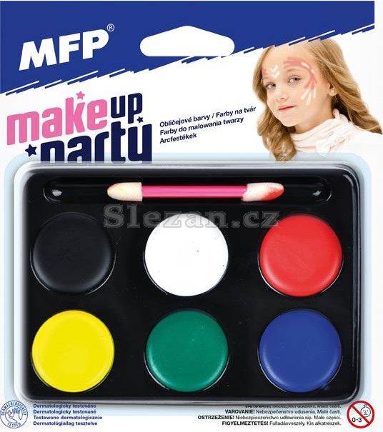 Díky těmto pestrým barvám vykouzlíte na tváři dítěte krásnou masku na karneval, party nebo jinou oslavu.