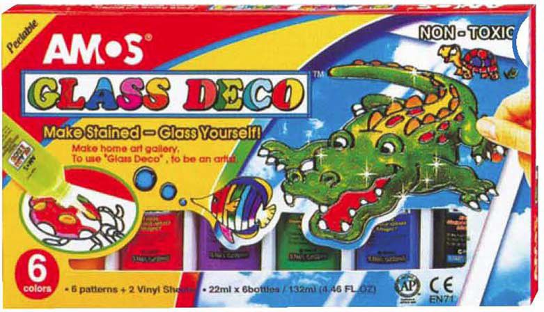 Barvičky na sklo 6 barev 22 ml + šablony a fólie.