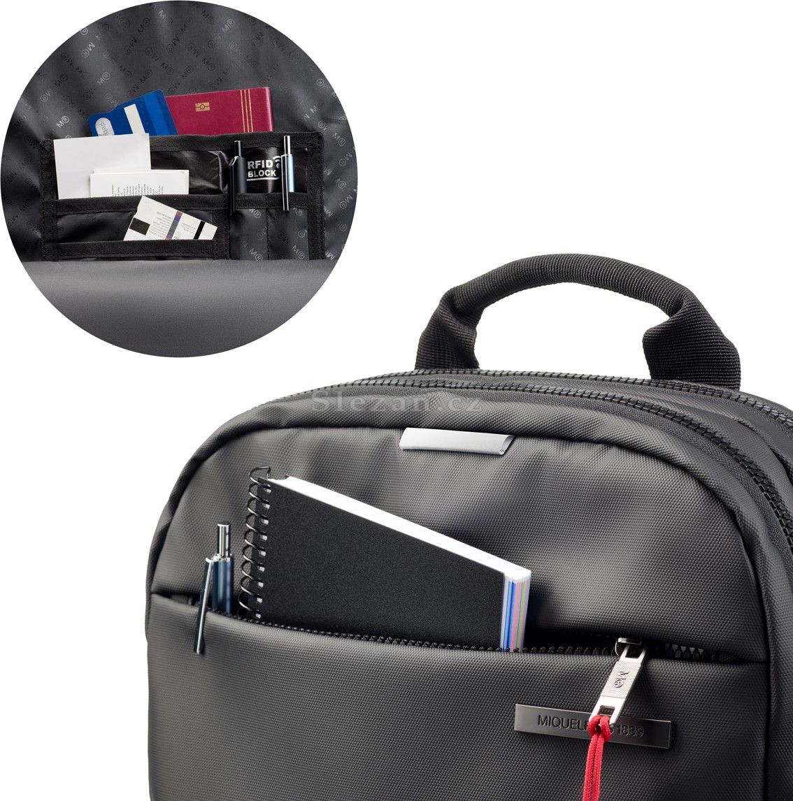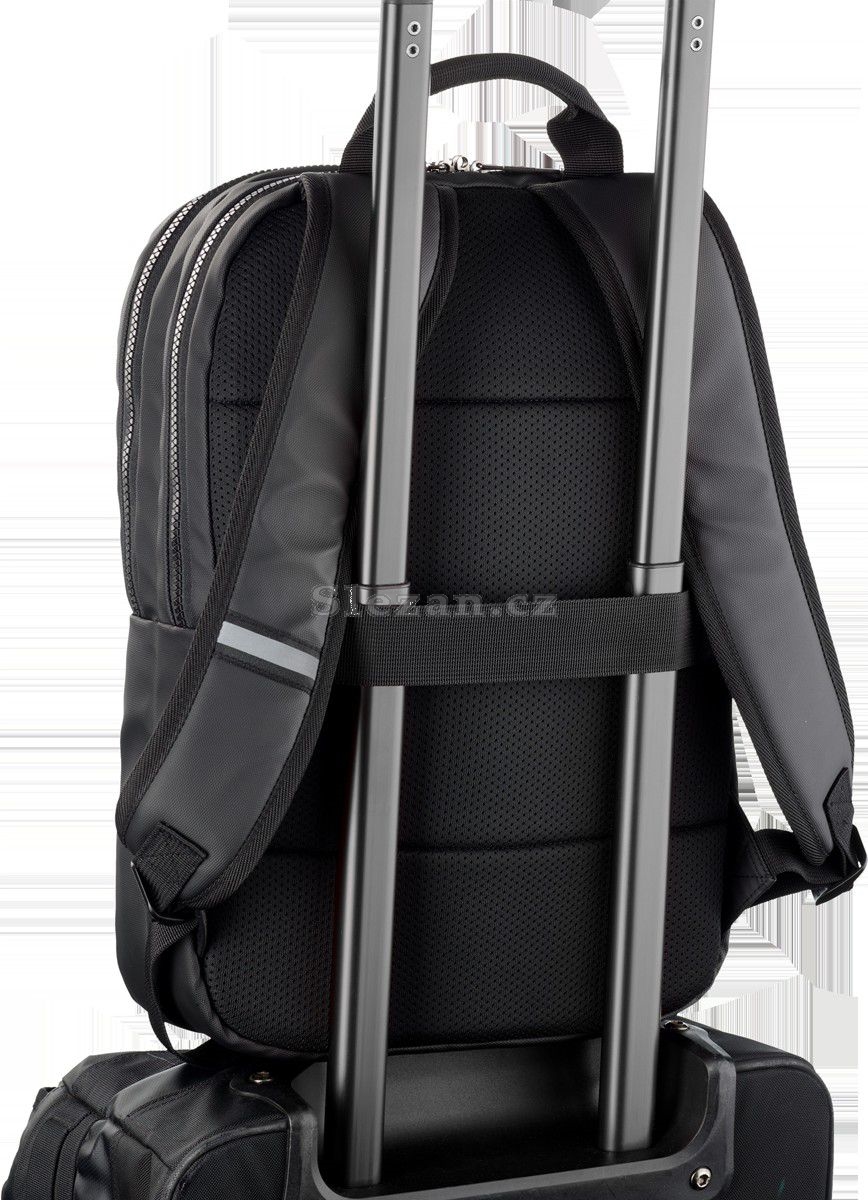 Polstrovaný batoh s kapsou a oddílem pro bezpečné uložení notebooku či tabletu. Druhá vnitřní kapsa je doplněna organizérem a menší kapsou s funkcí RFID, bránící odcizení dat z platební karty nebo mobilního telefonu. Vnější kapsa pro rychlé uschování drobností. Polstrované záda a ramenní popruhy pro komfortní nošení. Možnost připevnění k troleji kufru. Reflexní prvek na přední straně batohu. Robustní kovový zip s očkem pro uzamčení batohu zámkem. Kovové decentní logo.