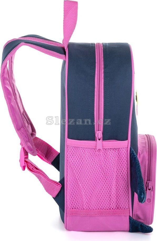 Má jednu velkou kapsu, menší kapsu na svačinu a postranní kapsičky na lahev na pití.